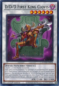 The other new boss monster and cover card of the set is D/D/D/D Dimensional King Arc Crisis. This level 12, Pendulum Scale 13 Fusion/pendulum monster can be special summoned by banishing 1 Fusion, 1 Synchro, 1 XYZ, and 1 Pendulum fiend monster from your field and or GY, and allows you to negate the effects of all face-up monsters your opponent controls when it's summoned. If that description wasn't indicative enough, this is more of a cool boss monster you bring out to flex on your opponent before you wipe them from existence, but not entirely essential to the strategy. Still, the pendulum scale of 13 pairs it nicely with Queen Machinex's scale 0 allowing you to summon virtually anything.