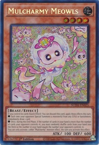Legendary 5D's Decks includes reprints of cards new and old to the Yu-Gi-Oh! card game. Reprints of some recent staples include Mulcharmy Purulia, Mulcharmy Fuwalos, and Mulcharmy Meowls. The Mulcharmy cards all have a pseudo- "Maxx C" effect, where you draw cards from your deck every time your opponent summons a monster. Mulcharmy Purulia draws every time your opponent summons from the hand, Fuwalos draws for the deck and Extra Deck, and Meowls draws for cards summoned from the GY or Banishment. These reprints come in common, making them much more accessible than their high rarity original printings. Other reprints include older staples like Ash Blossom & Joyous Spring, Effect Veiler, Infinite Impermanence, and Forbidden Droplet to name a few. Monster cards like Garden Rose Maiden, Revolution Synchron, and Blackwing - Silverwind the Ascendant also enjoy lower rarity printings in this set to make them more accessible.