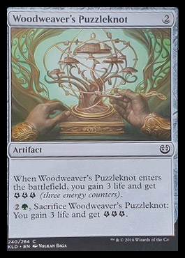 So why caution? Because Energy has the chance to be absolutely gross. If left unchecked an Energy deck could achieve Tron levels of a mana analogue. Live Fast, Die Young, and Woodweavers’s Puzzleknot show some of the possible implementations of the mechanic. The Puzzleknot plays in a familiar space with cards like Glint Hawk and Kor Skyfisher. Energy may be a key to making decks featuring these cards be able to advance their game state without sacrificing tempo. Often Glint Hawk would return an Ancient Den or a Prophetic Prism for minimal gain. Reusing a Puzzleknot could mean a bust of Energy for any late game outlet.