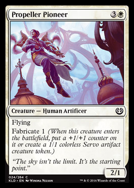 Finally we come to Fabricate, the mechanic that is easiest to evaluate. Why? Pauper already has access to a familiar card in Sandsteppe Outcast. The ability to either generate a token or extra power is nothing new and Sandsteppe Outcast hovers on the fringe of playable. Fabricate makes a much better case for being played thanks to the fact it creates Artifact tokens.
