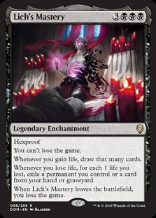 Lich's Mastery is a sweet card to build around and what's more flavorful then putting a card that has the text, "You can't lose the game" with "you win the game"? Nothing! This is my take on a ![]()