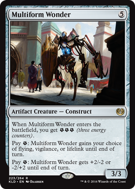 Very medium Blue energy creator, but it’s an 0/3. Needs more to see play. Only thing this has going for it is it fuels Aethersquall Ancient.