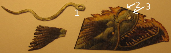 - Kiki-Jiki’s right arm needs to be behind his body (piece #2) at the shoulder, so the piece is long enough to tuck under piece #2. One finger needs to go behind the rock, while the other two go in front of it; the finger that goes behind the rock has some extra cardboard attached to slip behind that rock.