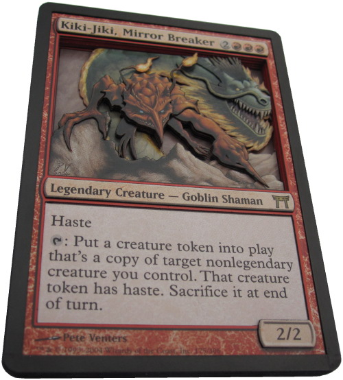 If I had a Kiki-Jiki Commander deck, I think it would be pretty cool to use the statue as my Commander, even if it would crowd the battlefield. I’m pretty sure the footprint is smaller than that of the new oversized Commanders. However, if you’d rather not carry an eight-pound statue to all of your Commander games, maybe a 3D version of the card is a better option.