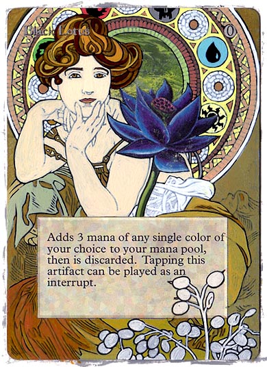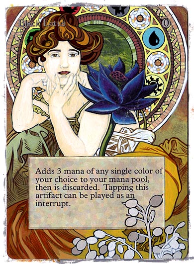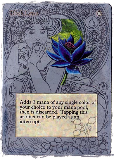 “Is there a card you’ve always wanted to do?” That’s the question Ben Lavender asked me a few weeks ago at the Star City Games Invitational in Indianapolis. As long as I have been altering cards, I have always wanted to paint a Black Lotus or a Mox. That was my answer. Sure, I’ve painted Force of Wills, an Imperial Seal, a Library of Alexandria, even a Timetwister. But a Lotus has always been missing from my achievements list.
