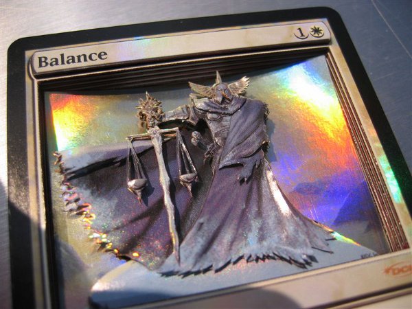 While that card looks amazing, Ohkubo mentioned that he didn't like working on foil cards because they are much harder to cut and manipulate. At the time, I didn't think much of it; I was only cutting Middle Earth cards, and they never made foils. Once I switched to Magic cards, however, the question was constant.