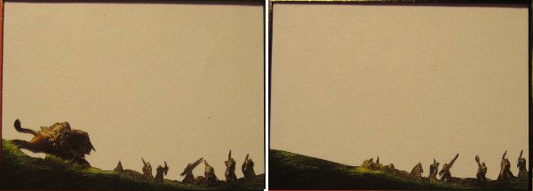 The flip side of taking an art you love and finding a card on which it would work is taking a card you love and finding art that will work for it. Sadly, some great cards have art that doesn't work out in 3D very well. Things like fog, flames, smoke, and translucent beams of energy are hard to pull off in 3D but are common elements in Magic art. Finding a new art for that tough card might be the best option.