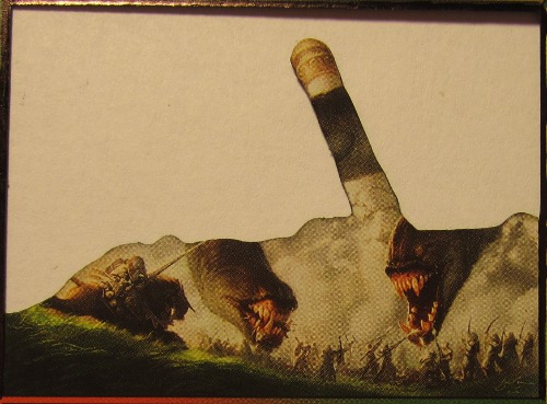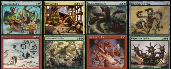 While I've always been a fan of Phytohydra, I didn't think that a Plant Hydra quite fit as replacement art for Progenitus. That was a common problem with most of the artwork—few of them were impressive enough to fill in for “The Soul of the World.” Eventually, I settled on the only other multicolored hydra: Apocalypse Hydra.