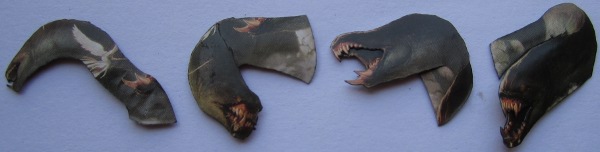 - The final head could have been made from two pieces, but I think it works better as one piece, cut and bent so the neck can tuck behind other heads.