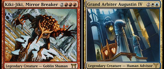 These two don't need any reimagining—just swap in the art from Soulsworn Jury for Grand Arbiter Augustin IV and any Kamigawa-block Goblin for Kiki-Jiki.