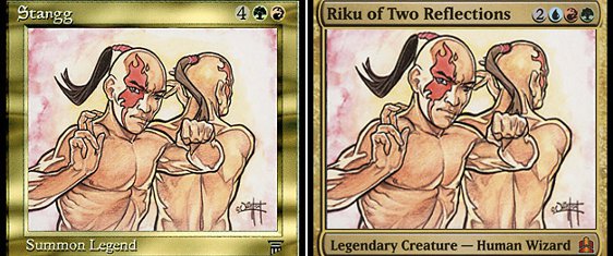Another reason to make an alternate-art 3D card is to turn a nonlegendary creature whose art you love into the commander for your newest deck. I'm a big fan of Nameless Race, but I have no idea what I'd do with a 3D version. The art always has made me think of a reflection or a twin, so maybe I should swap it in for one of these guys:
