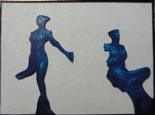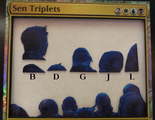 The first thing I did when I started working on this 3D Sen Triplets was determine how many layers I would need for the crowd in the foreground. With each copy of Sen Triplets running $7, I wanted to be sure not to destroy more cards than necessary.