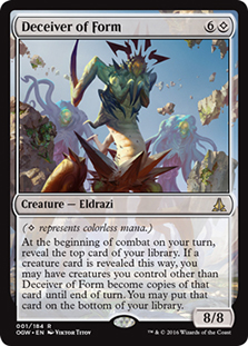 Today, looking toward Oath of the Gatewatch, Deceiver of Form has caught my attention. Essence of the Wild had promise, but we’re always locked into what essentially becomes a vanilla 6/6, and the effect only applies to nontoken creatures played after the 6-mana creature.