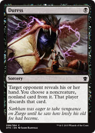 ![]() | Duress: This super-cool (and super-real) word is used to describe “a compulsion made under or because of a threat,” and as we can clearly see from the art, poor Zurgo here is being forced to spill the beans or else. | ![]() |