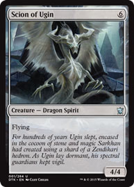 ![]() | Scion: We are starting off with something completely real. A scion is a descendant of a notable family, but the word can also mean “a young shoot or twig of a plant, especially one cut for grafting or rooting.” Interesting. The word can also more loosely be used to describe simply any descendant, and for Scion of Ugin, it seems to be exactly that: creatures who can attribute their existence to Ugin. | ![]() |