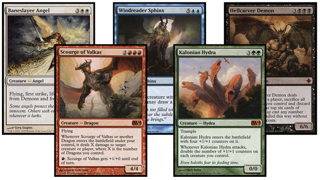 These five creatures are used set after set, being altered to fit whatever plane we were on in order to show us the “Innistrad version of a Dragon” or the “Zendikar version of a Sphinx.”