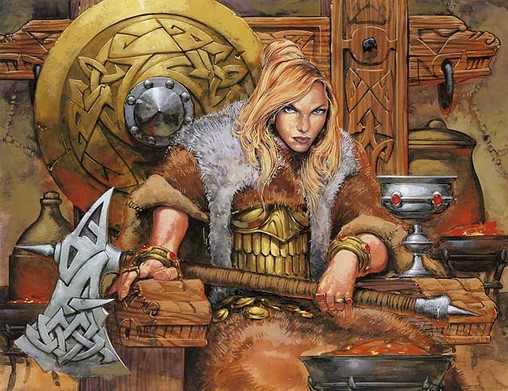A couple things added to the inspiration of this deck. First was my playgroup’s Commander decks. I didn’t have one, and I wanted to play with something more unique. Second, one of my friends has a land-becomes-creatures-then-overrun deck with Azusa, Lost but Seeking, which was very vexing. I intended to use his overrun concept for a counterintuitive overrun deck. This is about the time I rediscovered the old mechanic of rampage and rathi Berserker. I needed a way to force blocks, however, for it to be effective. Eventually, I became more interested in the character type of Berserker. I fell across Dwarven Berserker—and then Keldon Warlord accidentally—and I wanted to make a creature-heavy, crazy-haircut-or-headpiece, death-metal deck meant to swing with wild abandon. A subtle theme of making my creatures seem unimpressive unless the opponent were to block began to form, and Invasion Plans and Varchild's War-Riders made me love it. I needed a commander, which Lovisa Coldeyes fulfills. Then, I filled the deck with interesting ways to open decisions around attacking and blocking. I’m honestly still on the lookout for additional avenues of Warriors, Berserkers, and Barbarians and decided that, realistically, the deck may function better with a completely Warrior base, but I’m not interested in a Warrior-only deck. That would remove some of these cards that formed the inspiration of the deck in the first place. Last, I really wanted to add Chaos Lord into this deck, as he is very nostalgic, and I am fond of the artwork, but he is none of the three types, and in ways, Lovisa fits in a complementary position.