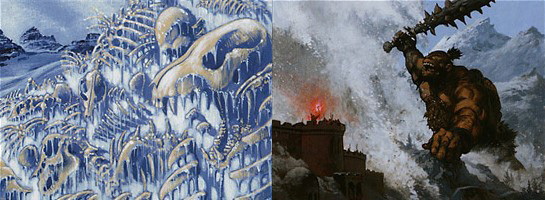 Wall of Frost, Snow Fortress, Frostling, Glacial Wall, Blizzard Elemental, Ice Cage, Iceberg, Frost Breath, Winter's Chill, Skred, Frozen Solid, Glacial Ray, Glacial Crevasses, Snow-Covered Island, Snow-Covered Mountain, Mouth of Ronom, Glacial Chasm, Ice Floe, Thawing Glaciers and Goblin Snowman