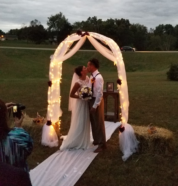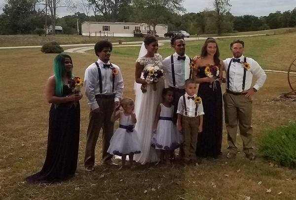 The first is a kiss of the couple, and the other is the wedding party, including two of my sisters.