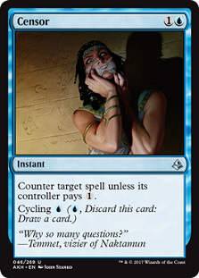 Miscalculation, eat your heart out! Though this card is slightly less powerful on the front end than the Urza’s Legacy common, the fact that it cycles for only a single mana in the mid — and late — game means a world of difference, especially for a deck that may be trying to get one or more Drake Haven triggers out of this card in the waning turns of a game. Having a two-mana universal counterspell in Standard means a ton of common play patterns will be disrupted, and I foresee a lot of players unprepared for the way this card slows down games. I love how this card creates a game of cat-and-mouse with opposing Tireless Trackers, where you’ll want to play a land first to play around the opposing Force Spike, but you lose the extra Clue token and open yourself up to getting your Tracker removed with nothing to show for it. More importantly, this is the kind of card that leaves Gideon, Ally of Zendikar in a cold sweat. There’s a ton of incentive to play around Censor (as trading your four mana for your opponent’s two is a losing proposition), but taking a turn off of casting your haymaker to allow your opponent to cycle Censor and set up removal + counterspell on the subsequent turn is horrible in its own way. As Ari Lax mentioned on Twitter, the fact that many of the lands come into play tapped on turns four through six means that playing around Censor blowouts will lead to one-and-one-half turns off, on average, rather than a one-turn slowdown. Expect Censor to do a lot of good work, but beware the potential in a Saheeli Rai shell. Jeskai Saheeli with Censor could be just too damn good.