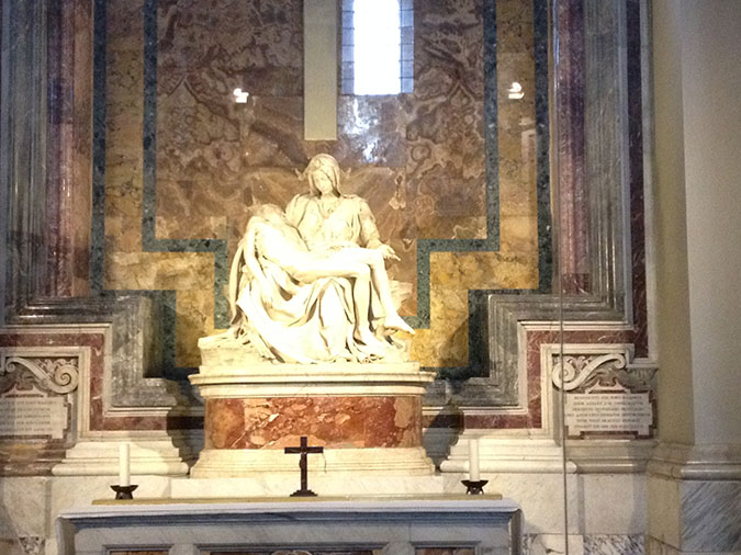 The tour covered the Vatican museums, the Sistine Chapel, and St. Peter’s Basilica, and I took many, many pictures—just not of the Sistine Chapel. They don’t allow them in there. Suffice to say that everything is much smaller in person. Still, there were some amazing classical-period pieces of art.