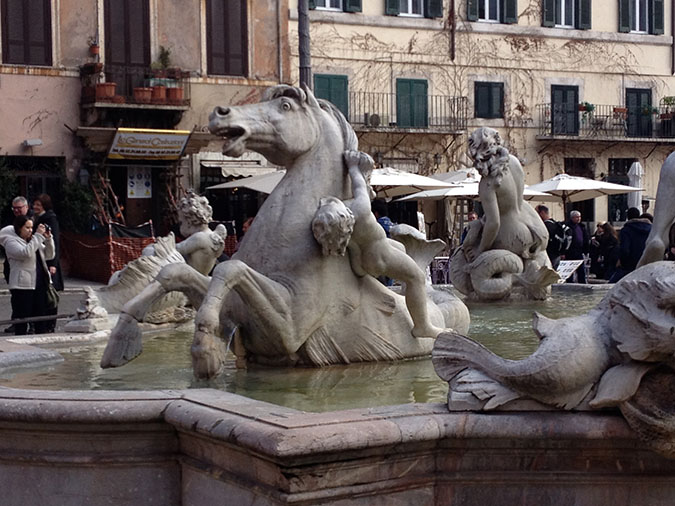 Nearby is the famous Piazza Navona, famous mostly for being a place tourists gather to look at fountains and things like this.