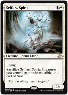 As noted, Spell Queller has players' attention, with the other new cards in this deck a little behind them. But Selfless Spirit is the best Dauntless Escort we've seen, put on an aggressive flyer, and Mausoleum Wanderer is Judge's Familiar except that it's often a 2/2. Collective Effort is a little bit weird, but with as much flash as this deck has, tapping some creatures to escalate it isn't as much of a cost as it would be for some other decks. The following sequence is a Christmasland sort of example, but it's illustrative anyway:
