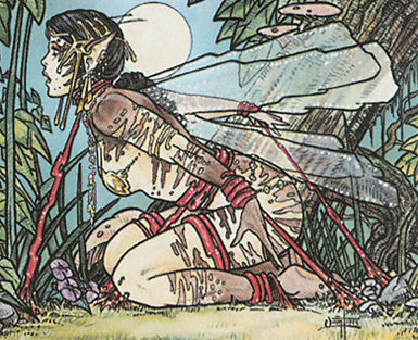 Why am I showing art of a male when the column is about females? To show that it has happened. Wizards has printed cards with artwork of men in extremely sexual and questionable positions. This card has received less attention than many of the others on this list, perhaps because it is a male, but also partially due to a very small printing; it was released in Homelands, one of the most disliked sets of all time, and only on one version of the card. (Homelands and a few other early sets released functionally identical cards with different art and flavor text.) For all of that, it comes very close to falling under SDID category as well as treading closely to the no-nudity rule.