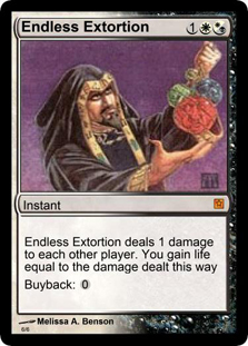 Let the naysayers nay all of their says—I say. We know better. What about regular multiplayer games with 20 life starting totals? Twenty extort activations, and you win. Can this actually work? I started to look at the difficulties to see if I could solve them. Could a deck, relying almost completely on extort life-loss, win games?