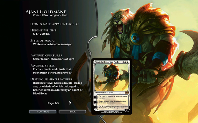 This setting creates games against various computer opponents with predictable decks. One deck plays Suntail Hawk every turn. Another plays a Shivan Dragon every turn. You work your way through the campaigns to unlock new decks. Each planeswalker has his or her own impressive screen.