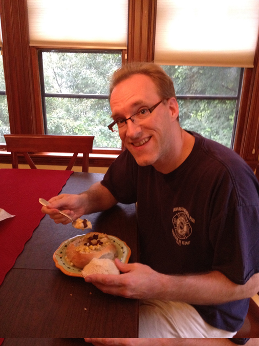And as long as we are going to be different, we'll kick it up a notch and do 'em in a bread bowl! While it sounds environmentally friendly to eat the bowl, I can't guarantee the bread bowl won't leak, so ensure plates are involved. When it comes to bread bowls, you use a bread bowl because hey, who doesn't love a bread bowl!?