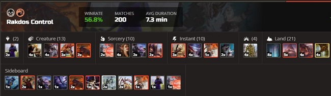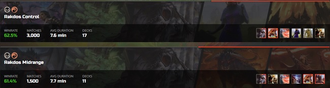 decks from running out of cards, and Omnath could generate too much value too quickly for a 1-for-1 strategy to keep up with. One last thing to note before we begin is that while untapped.gg lists two separate archetypes for Rakdos, they are virtually the same deck. I'll be calling the deck "Rakdos Midrange" from this point on as I see this as more of a Jund Midrange style deck than anything else (discard + removal + threats), but you are free to call it "Rakdos Control" if you'd prefer.