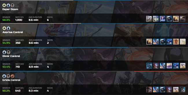 What do all of these decks have in common? Well, three of them have "Control" in the name, all of them are fairly reactive, and your sideboard plan against each should be very similar. Non-Adventure spot removal comes out, discard comes in, and Skyclave Shades come in as well.