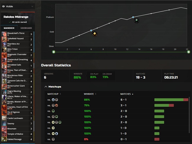 I played a bit with the deck myself too, of course. Started from Silver (Standard has been terrible for the last year or so, don't judge!) and climbed up to Plat 2 with an 86% win rate. If you'd like to give my own list a spin, copy and Import this into Arena: