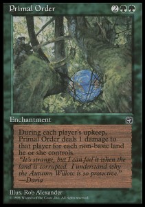 There has been a lot of criticism of the eternal formats specifically due to the average $300 land base decks run. To the dismay of, let's call them, long term investors Primal Order punishes them for what popular belief branded mandatory. Who would have thought there was an answer to the land base problem in Homelands.
