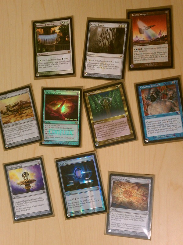 I noticed that I had a lot of other permanents that can control the board as well. Obelisk of Alara and friends works very well in a deck with a lot of noncreature permanents controlling the board. I miss Staff of Domination, but it’s banned.