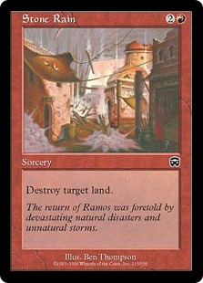 Let’s look at the first two methods of playing spells proactively—attacking your opponent’s spells. The most fundamental avenue of doing this is to deny your opponent the ability to cast his spells. This is why Stone Rain is the most basic representation of this. So, how do you stop your opponent from casting spells?