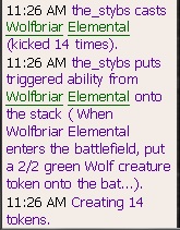 Player kenflipkick had dropped a Grim Tutor for Evacuation, but as it wasn't a hard board wipe, I was able to rally the troops again for a multikicker of 11 on turn seven for a turn-eight win. Jay helped out by jumping at the Tooth and Nail-dropping Eldrazi player with a 30/27 Silvos, Rogue Elemental (equipped by Strata Scythe that imprinted Forest, of course).