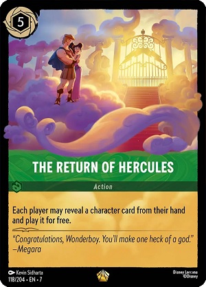 This card will change board states all over. In Constructed, your benefit will outweigh your opponent's. I am a big fan of gearing toward Hades - Infernal Schemer and Maleficent - Monstrous Dragon since you get to empty the bag and basically deny their "free play." Of course, just grabbing a crazy game changer like Mufasa - Ruler of Pride Rock is available as well. Yes, I am also looking at you Rafiki - Ethereal Guide.