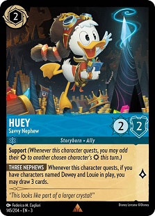 His deck starts with some typical ramp with Gramma Tala - Storyteller and Mickey Mouse-Detective. Even a turn one Pawpsicle makes you think he is playing a normal meta. But then he inks a Dewey - Showy Nephew, and you know it's Tony behind the wheel. To be fair, my final build that I am sharing with you doesn't include any Ducks, but I'm not as crazy as Tony. I believe he calls them the "Exodia" of Lorcana.