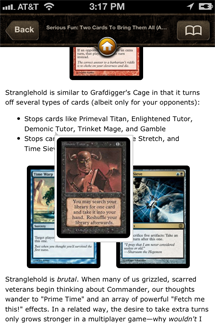 This is a good first try at it, and it shouldn’t take too much to evolve it into the preferred way to read DailyMTG content, especially if and when a native iPad version is released.