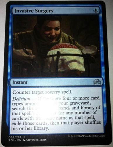 It’s unfortunate that Invasive Surgery is probably too narrow to see main-decked play. It’s a cost that many players in eternal formats will be willing to make in order to beat the more linear decks that rely on Scapeshift, Past in Flames, and Show and Tell. I’m not one to often dabble in speculation, but picking up foil copies of an eternal-playable counterspell is a surefire financial gain in the long term.