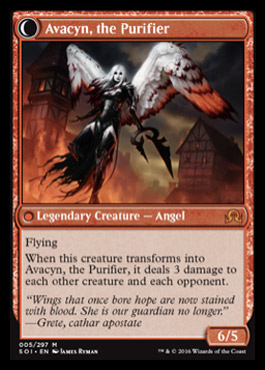 Finding a new shell for Avacyn is difficult and easy at the same time. The first thing to note is that Avacyn is a great Magic card on her own. This means that it isn’t hard to find decks in which she would have applications. The difficult part is finding a deck that can actually abuse her abilities. With so many abilities on a card, there’s a small laundry list of ways to apply her strengths (and compensate for her detractions) in different archetypes.
