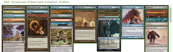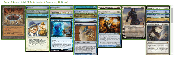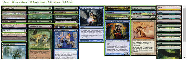 Control that utilizes the cards in Cube with the Miracle mechanic. It's a sweet deck when it comes together, that I feel is worth mentioning. Alexander Hayne introduced Terminus, Temporal Mastery, and Entreat the Angels into the Cube when he took down Pro Tour Avacyn Restored. What his deck didn't have access to was Sensei's Divining Top, Preordain, Brainstorm, Scroll Rack, or Jace, the Mind Sculptor. All potential inhabitants of packs of Pro Tour Cube.