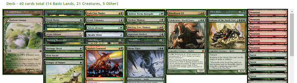 Key cards: Wirewood Symbiote, Imperious Perfect, Nissa, Voice of Zendikar, Metallic Mimic