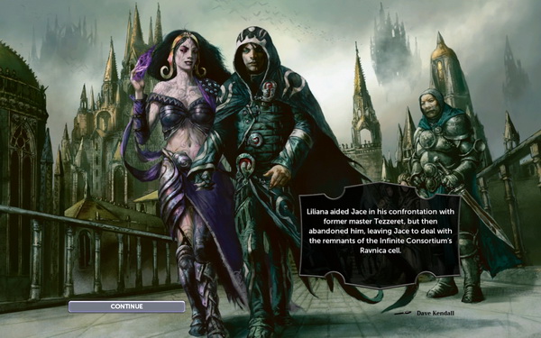 - Three new playable decks: Liliana Vess's "Grave Whispers" deck, Ajani Goldmane's "Auramancer" deck, and Ral Zarek's "Cloudburst" deck