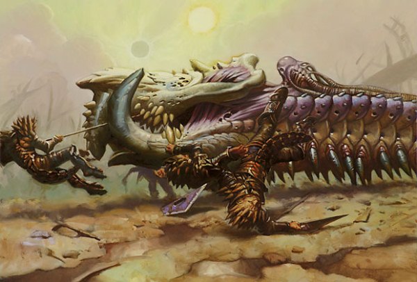 Huh? A battering ram is designed for destroying walls, which usually have high toughness, so the power boost I can take. But a +4 toughness? This is one of the largest power/toughness boosts ever found on an equipment. Equipping Batterskull to a creature that wouldn’t die without its help (a 0/1 or larger, in other words) gives you a monster bigger and tougher than Air Elemental, Cyclops Gladiator, or Battlegrace Angel, all from a giant centipede with big teeth that sprout other teeth. Presumably, the equipped creature sits in the top bit where the torso is, and it is covered in armored plates, but a Grizzly Bears driving a Batterskull can take down an Inferno Titan in a straight-up fight.