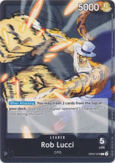 Let's start with OP-07 Rob Lucci. I believe by the end of this format this will be the most represented deck. It's not incredibly hard to pilot, can do multiple things, and focus on removal - which American One Piece players have favored in the previous formats. It has favored to even matchups into most of the format with its worst matchup being ST-13 Black/Yellow Monkey D. Luffy. The next deck I want to take a look at is OP-05 Enel.