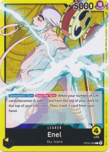 Enel is a very consistent leader the relies on creating advantage through his leader ability. His ability allows you to put the top card of your deck into your life when you hit 0 life cards, for the cost of discarding a card from your hand. This ability can only be used once during your opponents turn. It's this ability that led this deck to winning the first ever One Piece United States National Championship. So, this deck is no stranger to being one of the very best. What is new about this deck is the OP-07 Portgas D. Ace card that we got this set. The fact that it has Rush when you are at two or less life and can add a card to your life is game breaking. It has pretty good matchups across the board with its worst matchup being OP-07 Jewelry Bonney in my opinion. Lastly, let's talk about ST-10 Red Purple Law.