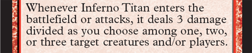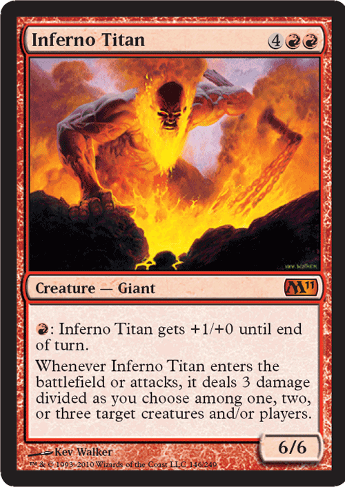 Six is some sort of a jinxed number in Magic. From Serra Angel all the way to Siege-Gang Commander five has been the golden number for creature casting costs. Only a card that fits perfectly color and build-wise (Sphinx of Jwar Isle for example) will make a competitive decklist at six mana. Well, the Inferno Titan tip-toes past five straight on to six, leaving one question in the wake – is this fellow playable in Constructed?